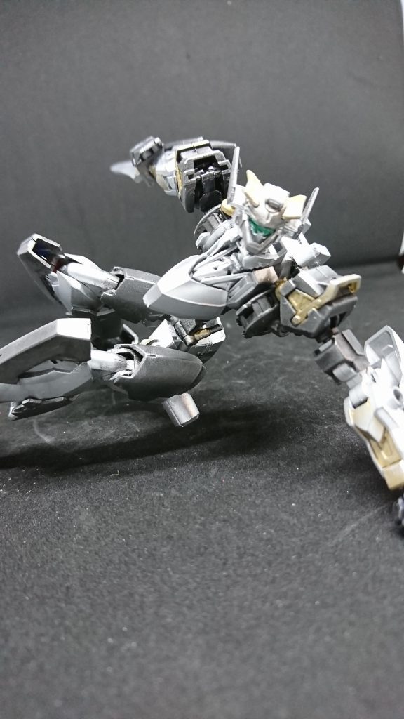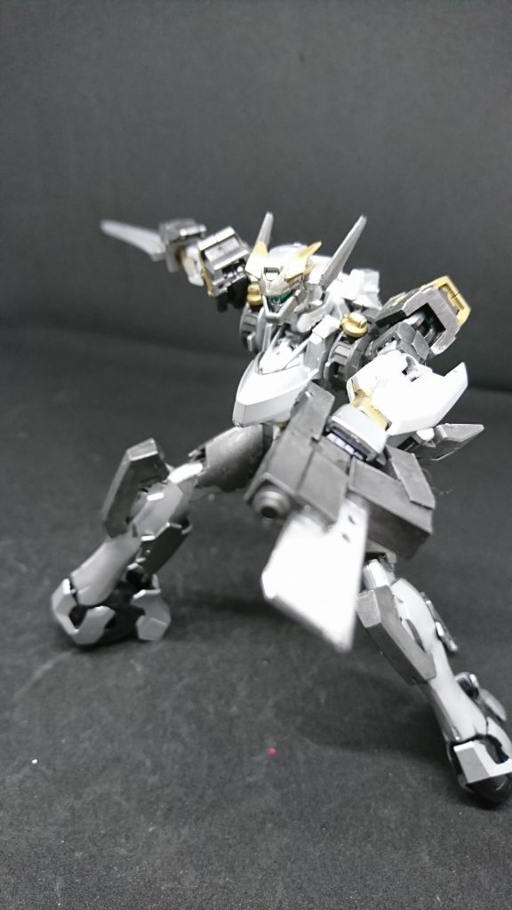 発端はウーンドヴォートの変形パーツを見て「これで胴体が作れそう」と思いガンダムフレームの胴体とジャンクパーツで作り腕は獅電のパーツとザラキエルのパーツを使用