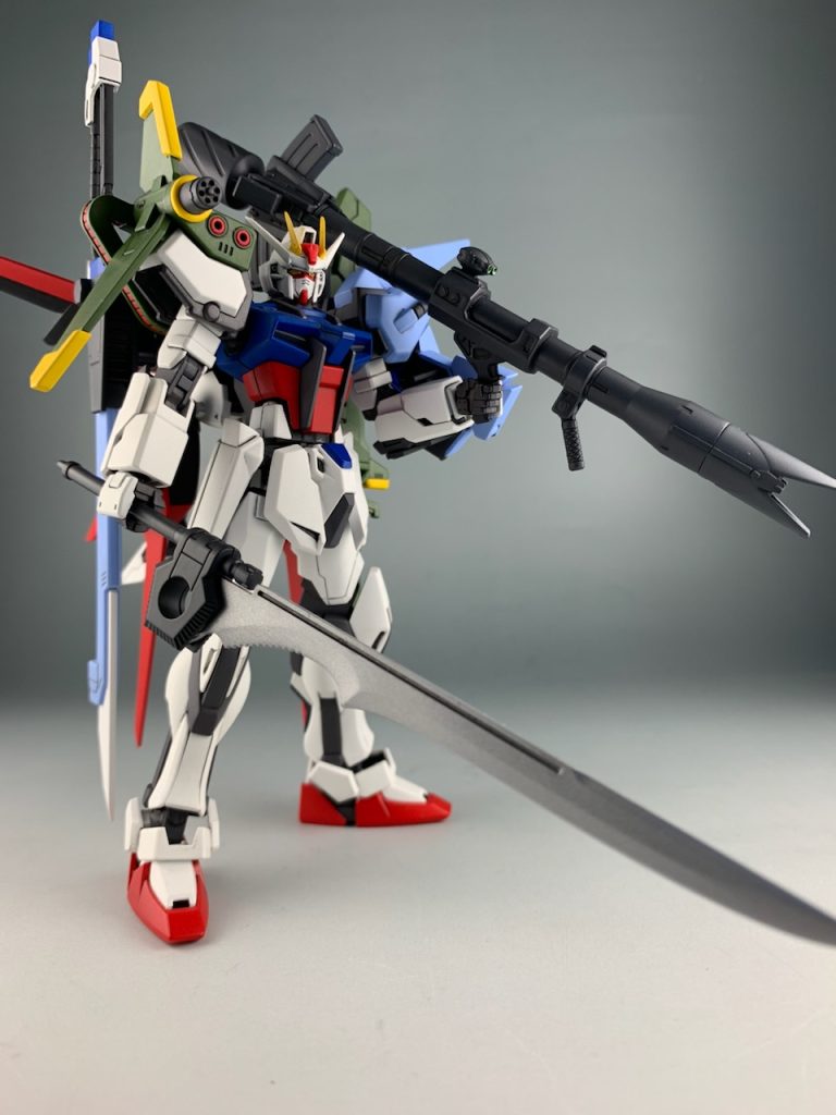 まず本体のストライクガンダムですが、HGCEを元に頭部は色分けが細かいEGのものに変更。関節部分はカクカクしたものにしたかったのでインパルスの関節を加工して取り付けました。