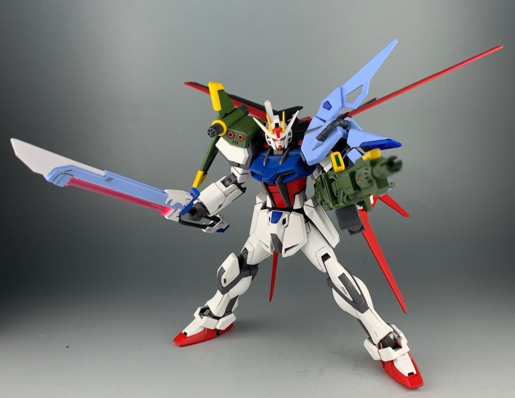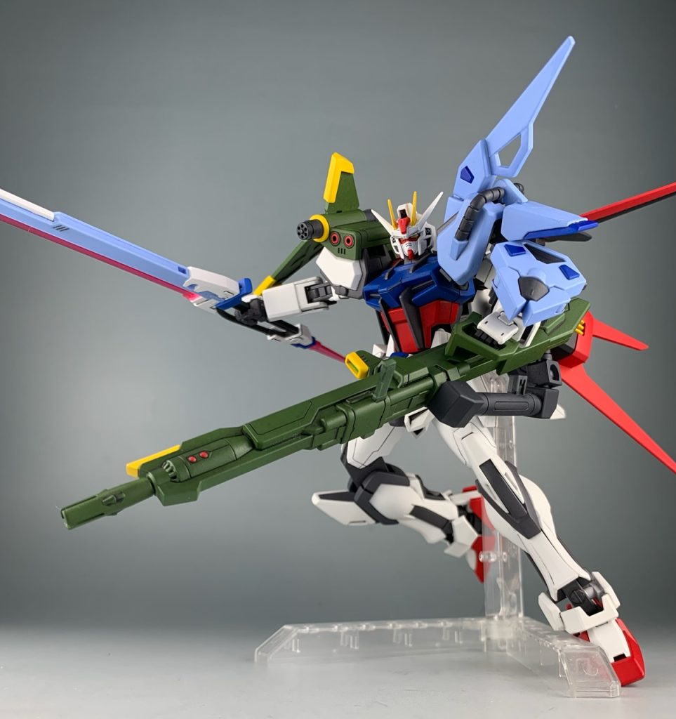 パーフェクトストライカーのエール部分はオプションセットのものを使用しています。翼は幅広のものが好みだったのでHGのパーフェクトストライクから流用しています。