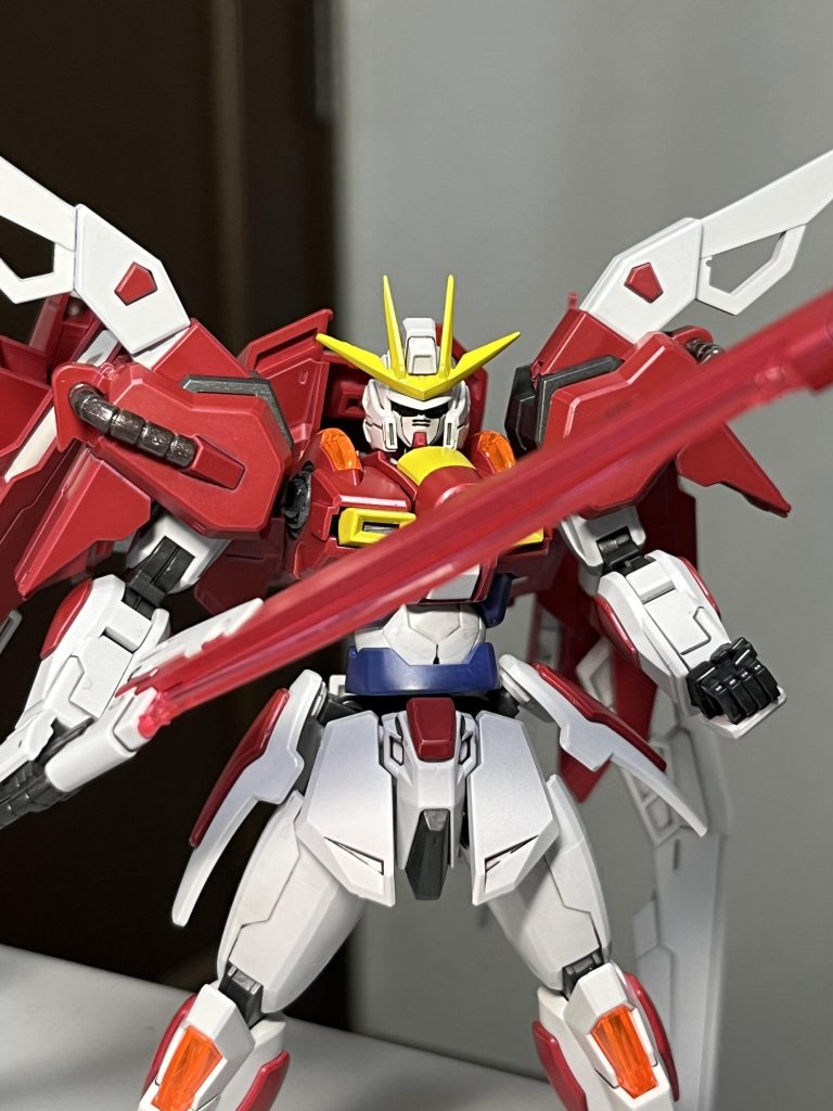 名前の通りビルドバーニングの強化機体で近接戦闘力の底上げと機動力の確保としてソードストライカーを両肩にBWSをバックパックとして追加。
