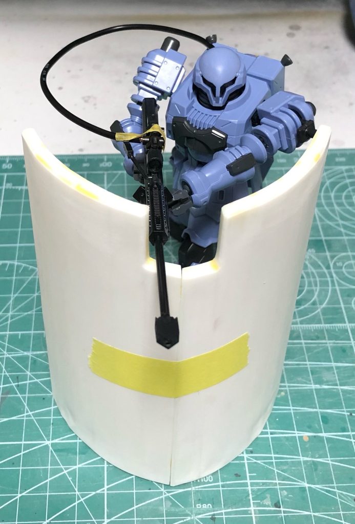 また、写真では分かりにくいですが、移動時は折りたたんだシールド裏にスナイパーライフルを懸架できるようになっています。