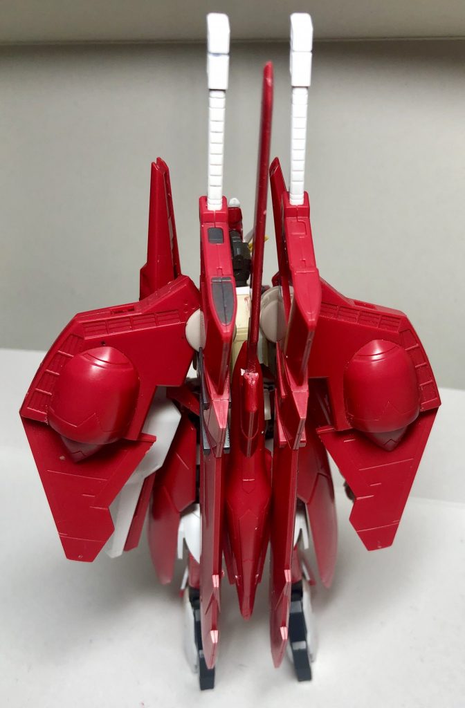 背面の武装やバックパックに干渉する為、内部にグレイズの肩パーツのジョイントを仕込み、間接的に接続していたパーツを、ガンダムフレームに直接接続出来るように改造すると同時に、向きを上向きから横向きに修正しました。