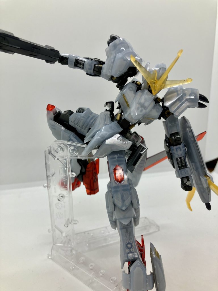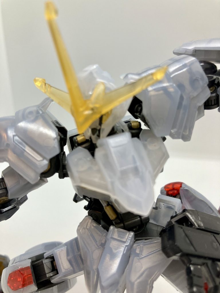 ガンダムフレームの部分塗装と外装パーツの裏側をシルバーで塗装し金属感が透けて見えるようにしてみました