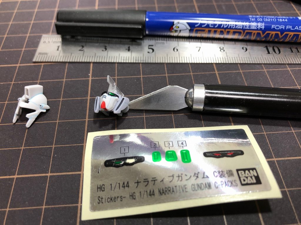 ナラティブガンダムのサイコフレームを、共鳴(覚醒)状態をイメージして塗装し、発行表現を工夫しました。
