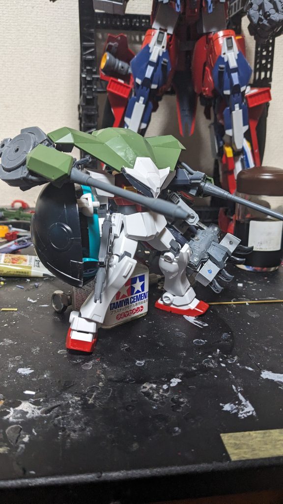 左腕を大型複合射撃武器を連結させた基本素体バックパックに連結ジョイントと腰のジョイント意外は普通のGM IIを残している