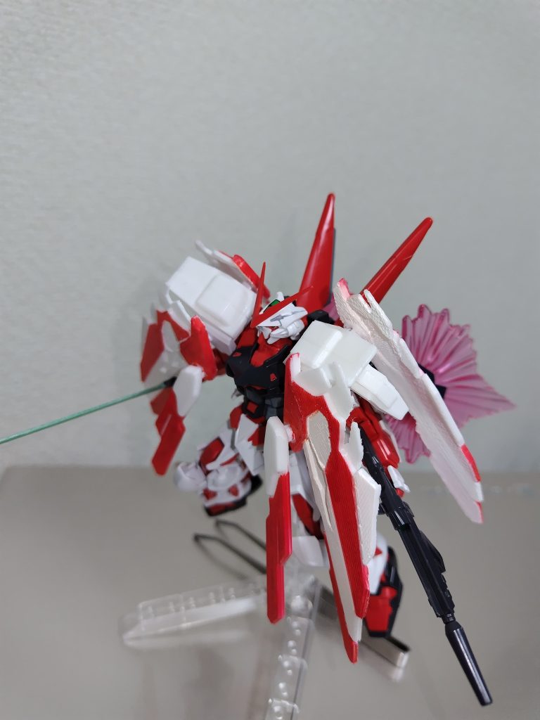 アストレイレッドフレームの改造機です。今回の改造テーマは「もしスパロボVの部隊にロウが参加していたら」です。あの好奇心の塊のような男が最高峰のテクノロジーに囲まれれば多分こうなるんじゃないか?と考えながら作製しました。