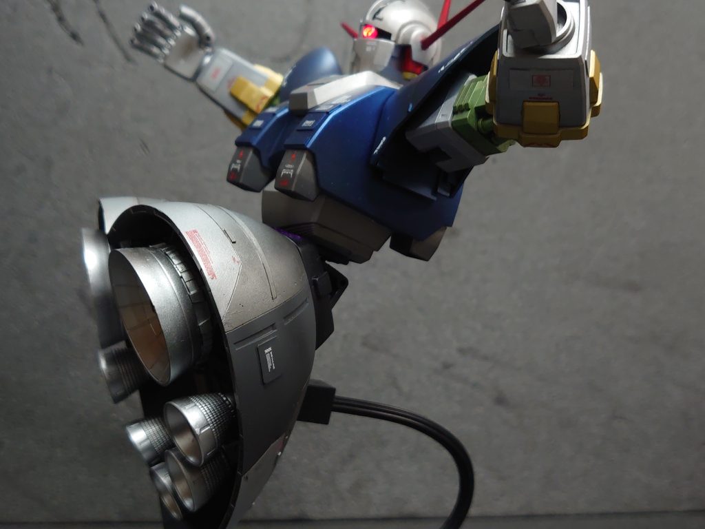 メタリック塗装で金属感が感じられる仕上がりになっていてカッコ良いですね✨腰の改造でRG風のポージングもバシッと決まってます!