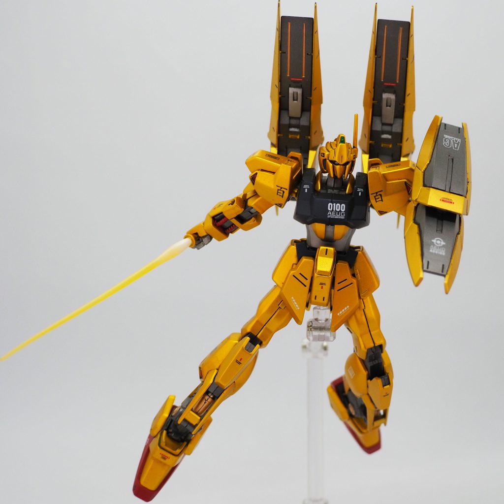 百式本体とブースター部のゴールドはスターブライトゴールドとブライトゴールドを50%ずつと乾燥後にクリアーイエローを重ね塗りしています