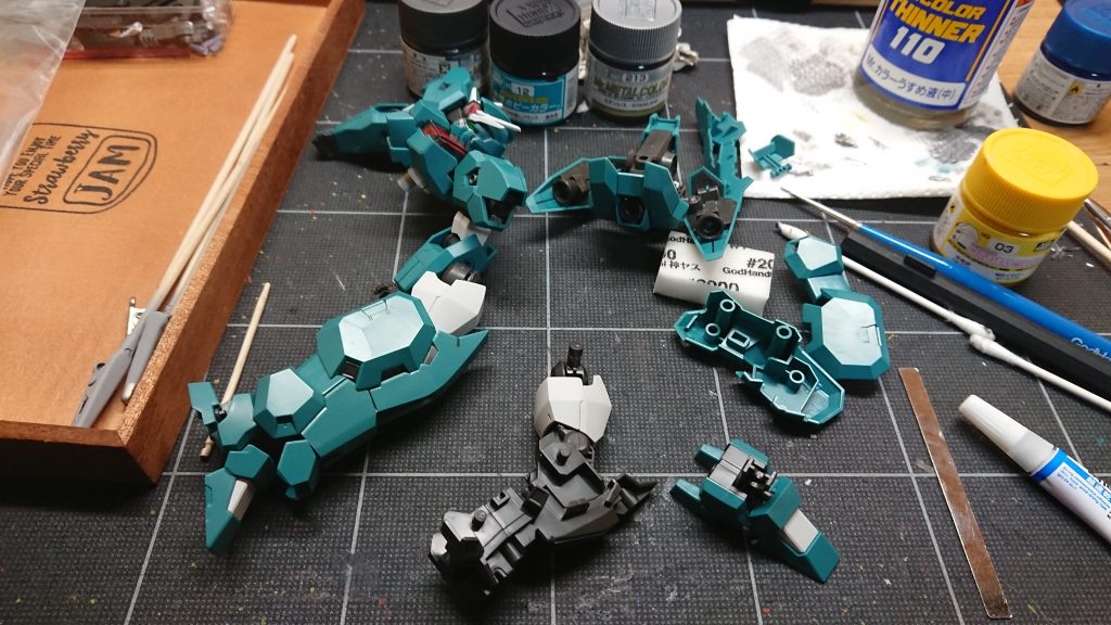 色なパーツが脱走してたのでお金の無いジェターク寮かな(zaku-kao1)って感じですね。