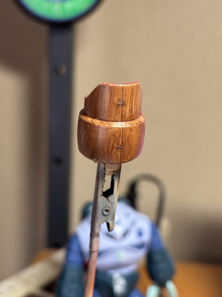 シャーペンを持たせた時のズゴックのフォルムが気に入ったので木目調のズゴックに木目のシャーペンを持たせよう!と思ったのが制作のきっかけです。