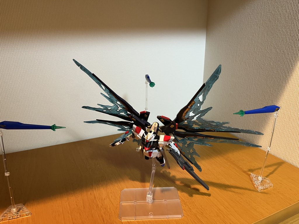 部分塗装をしてあります。塗装箇所は光の翼、バックパック、ドラグーン、ビームライフルです。