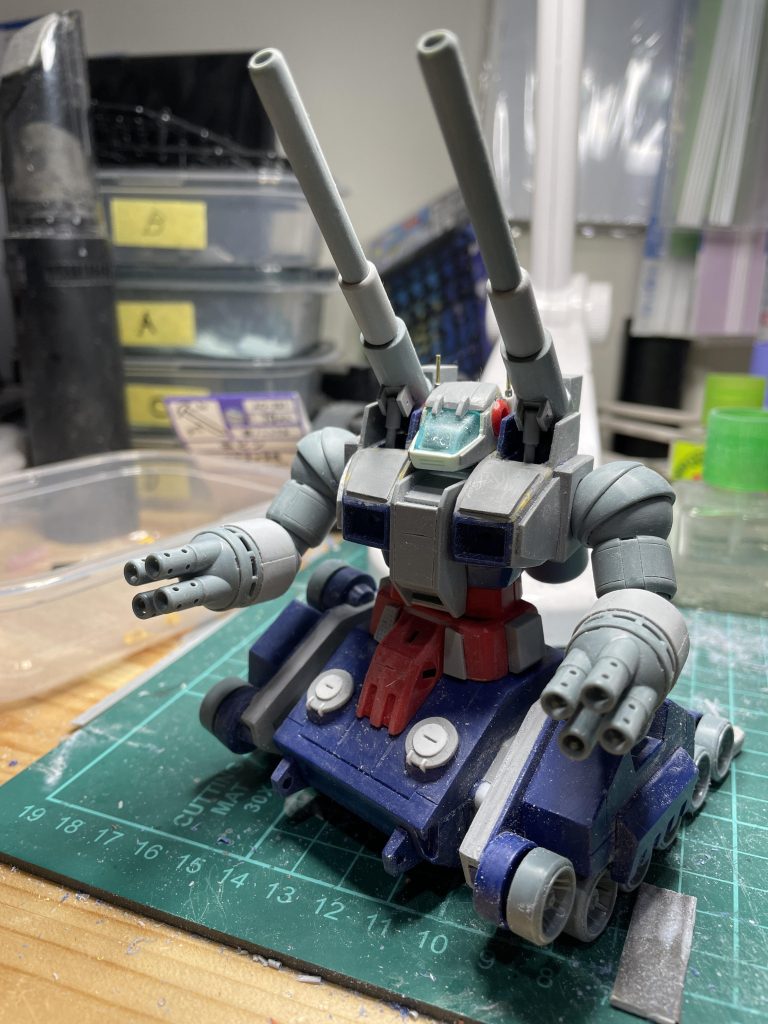 toyo-m HG 2025.01/18更新 ガンタンク 1952 124 いいねしたモデラー(124) 2 3 作品を共有 制作中断してたガンタンク完成しました。腰高で悪路なんか走れないイメージのガンタンク。戦車なので重量感を出すことを考えながら制作しました。 腰を短縮してキャタ幅と肩幅を広げて重量感を出しています。胸廻りもボリュームアップしてます。顔も薄く加工。アンテナも変更。ディーティールアップ少々。 ガンタンク コメント コメントをして応援しよう コメントにはログインが必要です Fujiwara 10か月前 全く同感、元キットは一寸腰高ですよね。貴作例くらいがウェルバランスと思います。追加ディテールも無骨&小気味よいですね!! toyo-m 10か月前 ありがとうございます! toyo-m おじさんになって久々ガンプラ作ってます。 toyo-mさんがお薦めする作品 ケンプファー ギャン ゲルググ ザク高機動型 8 ギャプラン ギャプラン旧キットを作ってみました。自分好みにバランス見なが… 9 ジムカスタム 友人が買ってくれた再販品。スタイル加工を少々と筋彫。グラデー… 7 ジム改 ヤフオクでほぼ定価で手に入れたジム改 9 ゲルググ 田舎では再販品なかなか手に入りません。中古市場で見つけたゲル… toyo-mさんのページ この作品をお薦め作品に設定する Please login to update your profile! Please login to update your profile! Please login to update your profile! Please login to update your profile!