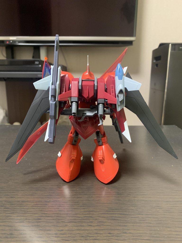 背面から。翼の塗り分けはまだ直線的なので楽でしたが、バーニアやミサイルポッドの赤など曲線や変わった形状、小さいパーツの塗り分けが本当にきつかったです💦