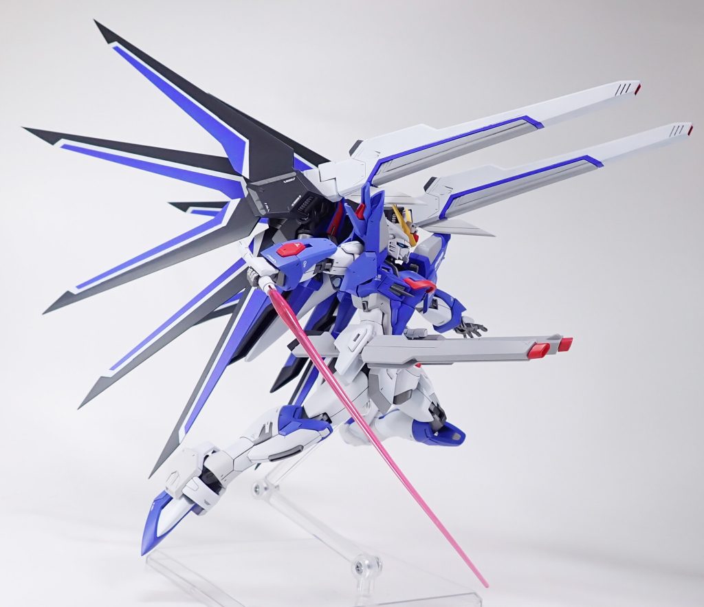 シャープな翼にどっしりとしたライフリ!Hi-νガンダム並にマッシブな仕上がりになってて素晴らしいですね!フリーダムが昨今も人気が衰えないのも納得!