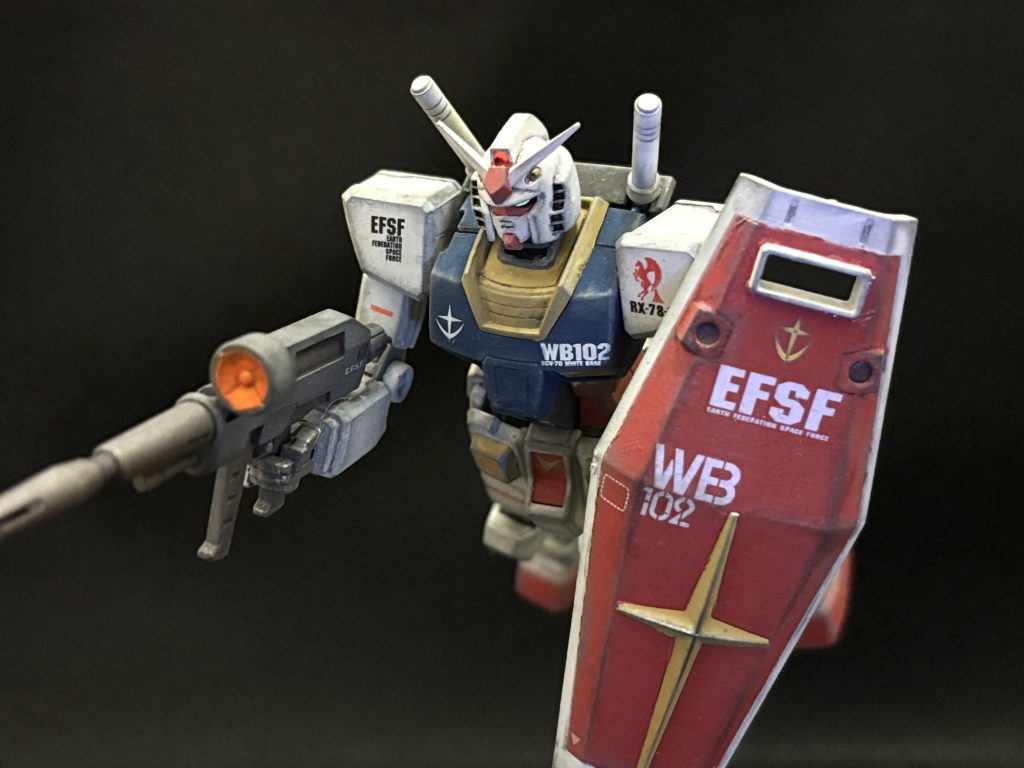 私の場合はエアブラシではなく筆塗りのみで、実物はとても雑な出来栄えです、お恥ずかしながら。実はひとつひとつにそんなに時間はかかっていないので、全塗装もぜひチャレンジしてみてください(gandam-hand2)