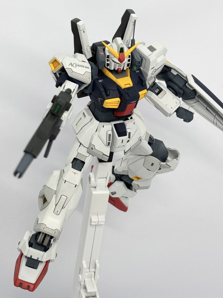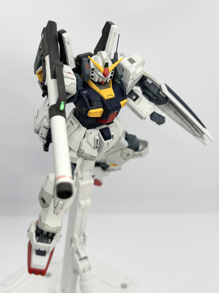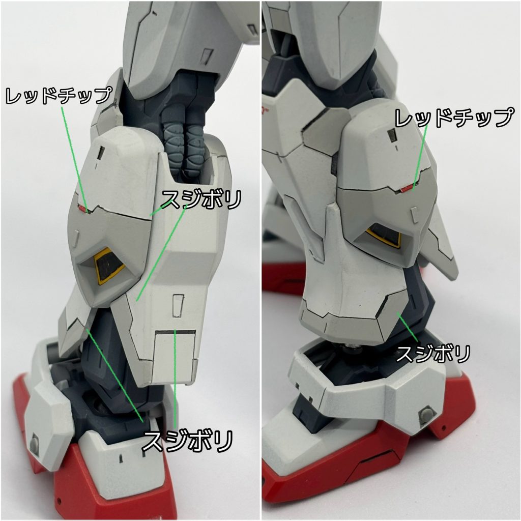 首、腰の延長による寸詰まり感の解消とスジボリ、レッドチップなどによる情報量の追加でRGと比較しても見劣りしないMk-IIを目指しました。