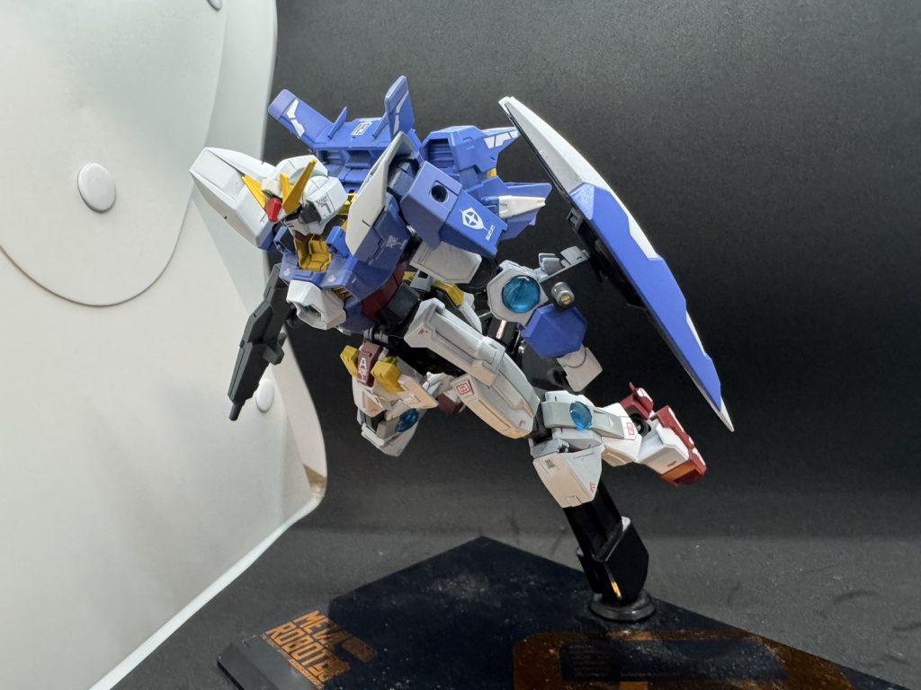 関節と各部に搭載されたGNコンデンサによってAGE系の機体でありながらも、粒子の貯蔵と解放が行えるようになっている。 また本機は可動範囲拡張のために関節を複雑化した部分があるため、装甲の一部にプラ板を積層して貼りつけて防御力の向上を図っている。