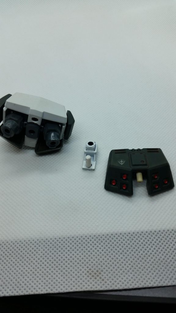因みに胸部アーマーも初めは原始的な取付け方法でしたが、実家に帰った際に棚から落ちてパーツが一部破損しており(シールドも何処かへ消えてしまった)修復の際ネオジウム磁石での取り付け方法に変えております。