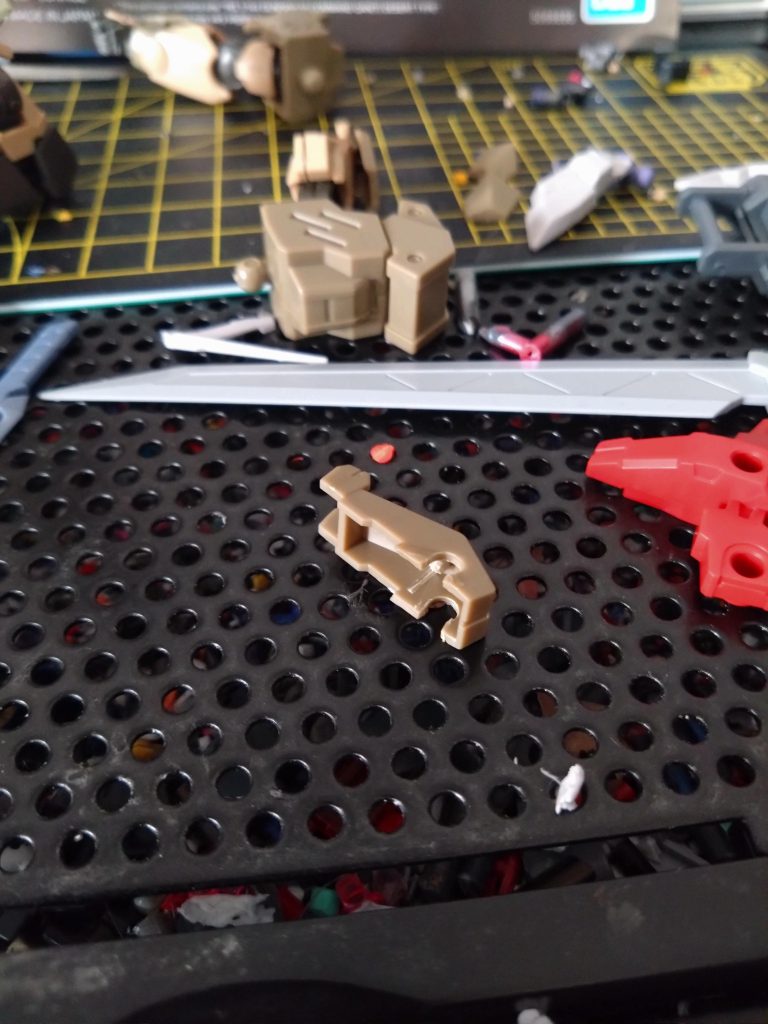 コマンドクアンタのフロントアーマーをバラバラにしたあとフェイクニューのアーマーと共にを30mmの腰フレームに移植するとかいう割とパワープレイで無理矢理実現。