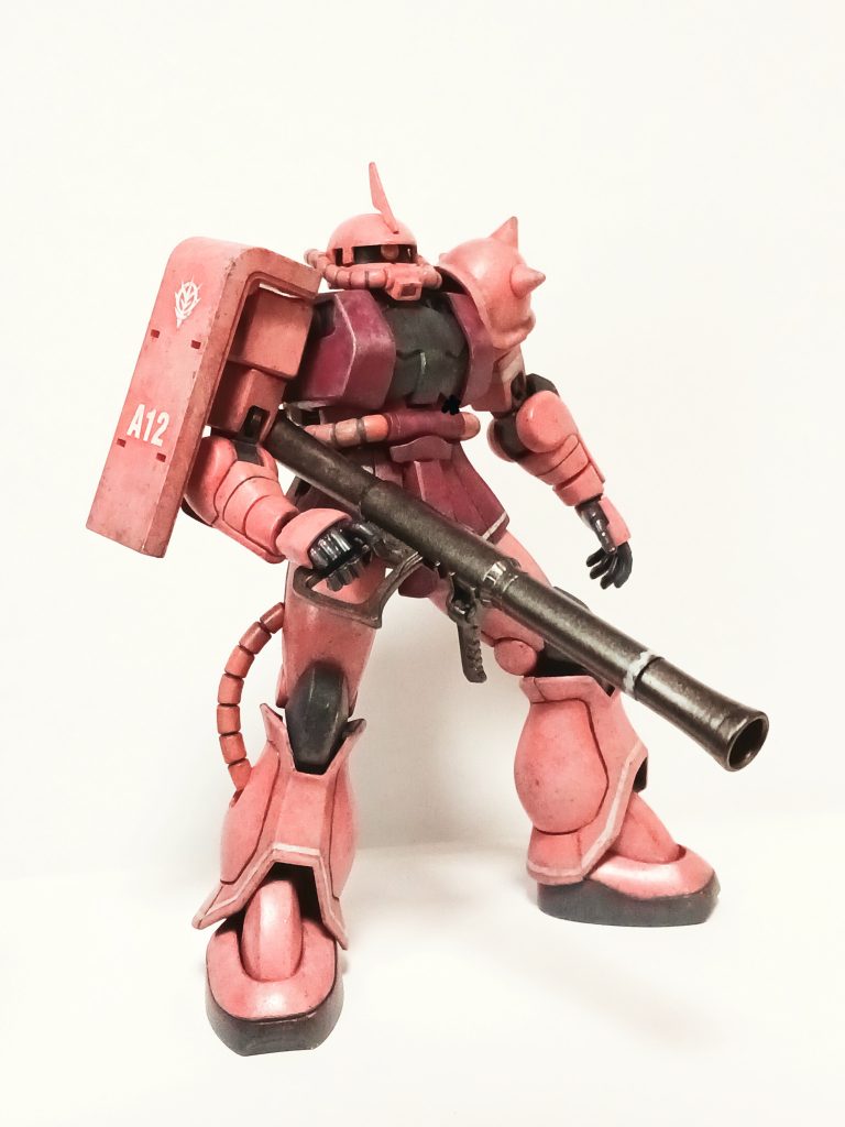 夜の瓦礫のジオラマが作れたら最高ですが、自分には無理なので、今回は、ガルマ散る時のシャア専用ザクをイメージして塗装しました。