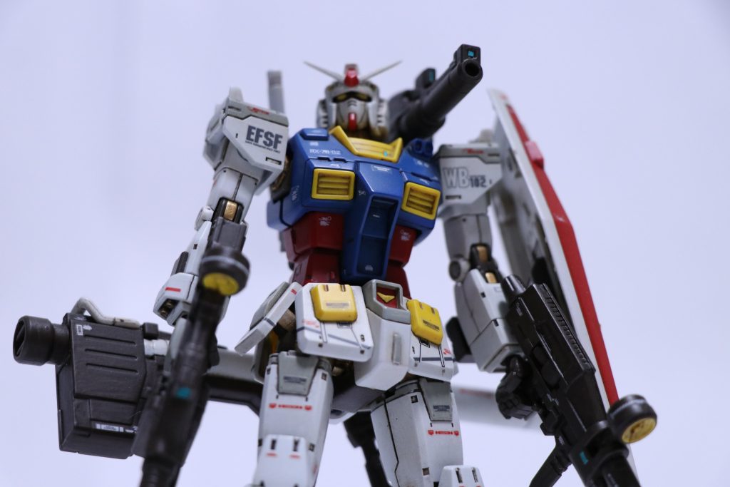 RGかと見間違えてしまいました。特に肩周りの色分けがかっこいいですね。やっぱりオリジンガンダムは最高ですね