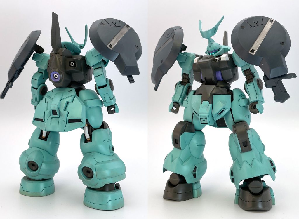 仮組での印象は重MSっぽさがしっかり出てて意外とアクションもできて好印象。一つ不満を持ったのは太ももが短すぎると感じたこと。疑って設定画を探し出して見比べるくらい。けっきょく設定画も短かかったんだけど。
