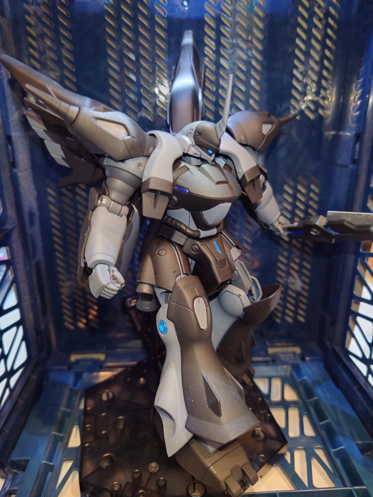 ケンプファーアメイジング、ガーベラ・テトラをベースに「高速機動特化型」として、シナンジュのバックパックと試作ビームフィールドドライブユニットを搭載したガンプラ。という設定。