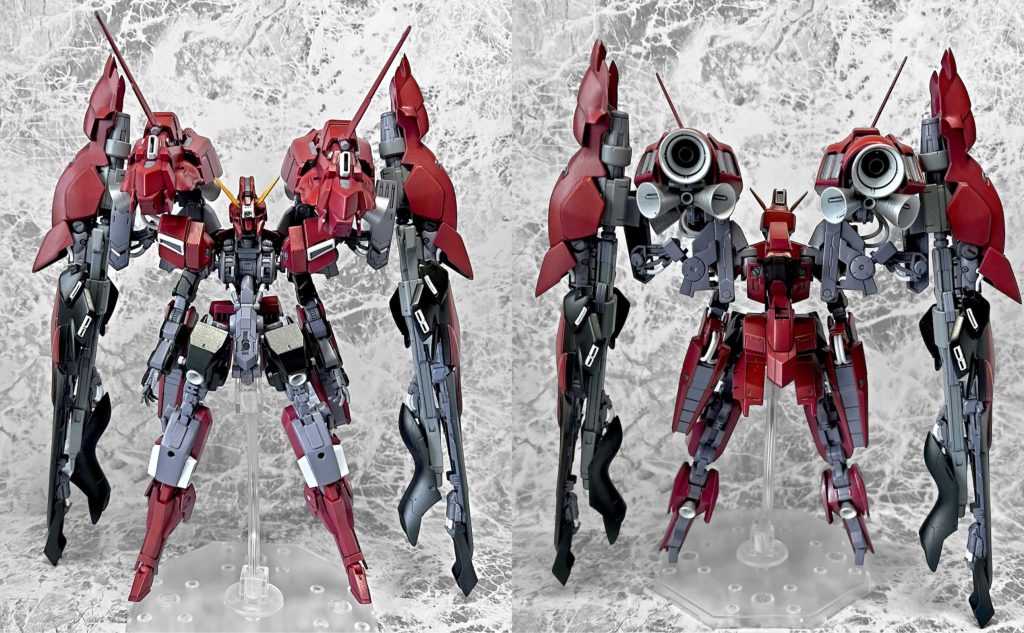 肩部スラスターユニットは標準装備として固定され、増加装甲・スラスターユニット・各種兵装の脱着により数種類の機体バリエーションが存在する。