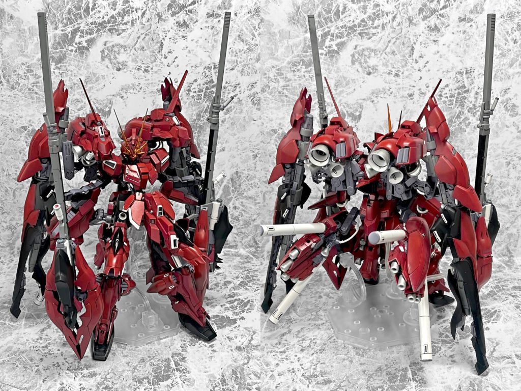 紆余曲折あって、シナンジュなどのネオ・ジオン系のパーツで魔改造して完成させました。