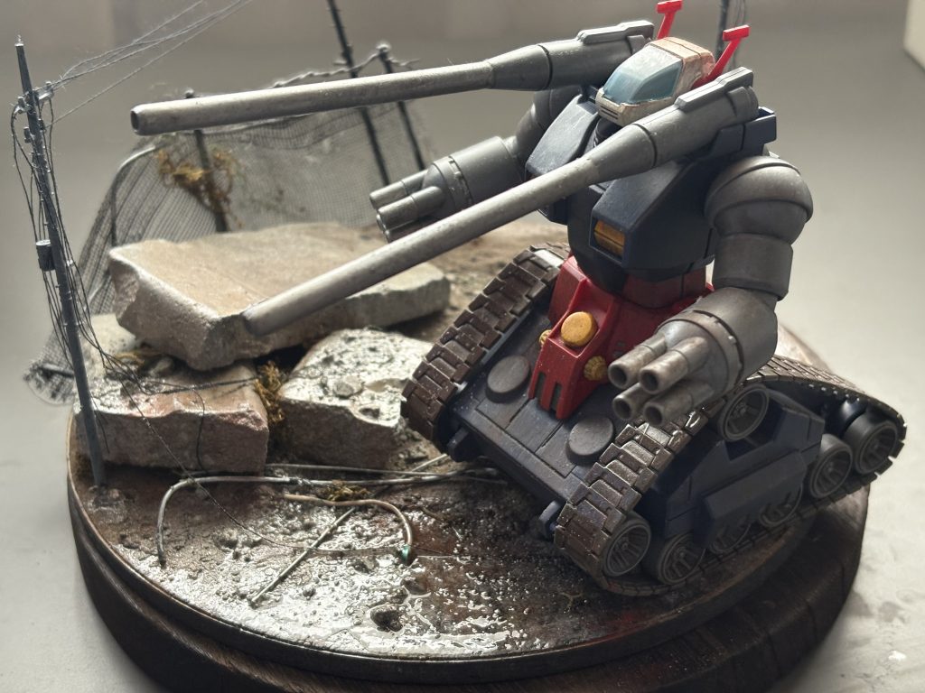 掲載はしませんがこれは12月頃に作ったジオラマなのでここまで作った後は戦車を乗せて飾っていました。それをガンタンクように汚し直したのが今回の作品です。