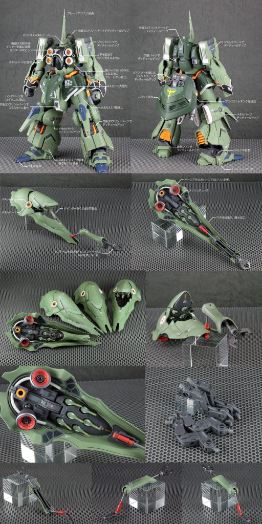 キットは細めのスタイルでしたので下半身を中心に幅増し、バインダー・ファンネルコンテナの開閉、ディティールアップ、パネルラインを追加し制作しました。