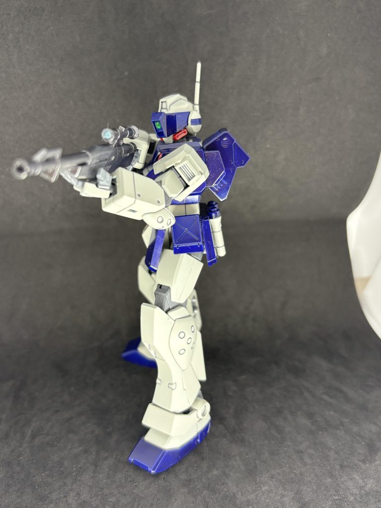ジム系の中でもトップクラスのイケメン。また、能力も半端ないはずなんですが、劇中では、一瞬にしてのやられ役でしたので、エース機仕様として、製作しました。
