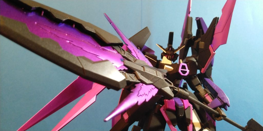 ガンダムマーカーのメタリックピンクを、ガンダムマーカーエアブラシで吹き付けました。中途半端に吹いた結果、グラデーションがかかってある意味成功です。