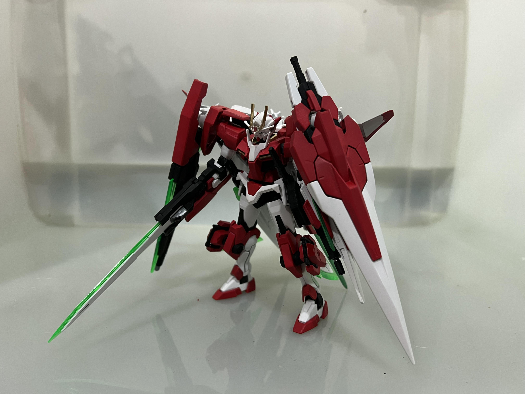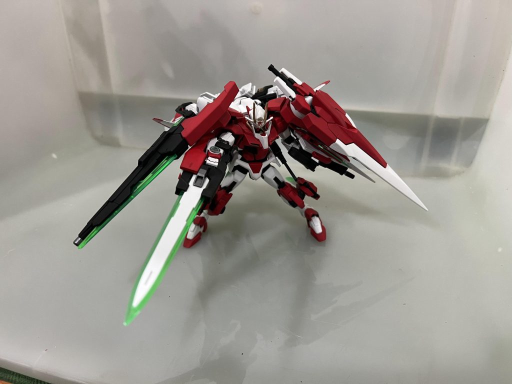 赤と白を基調としたカラーリングが鮮やかに映え、それでいて格好良さが少々上がっているのが良いですね。OOをベースにチューンアップされている感じがあって機体自体もチューンアップされているのに恥じない機体構成になっているのが良いですね。
