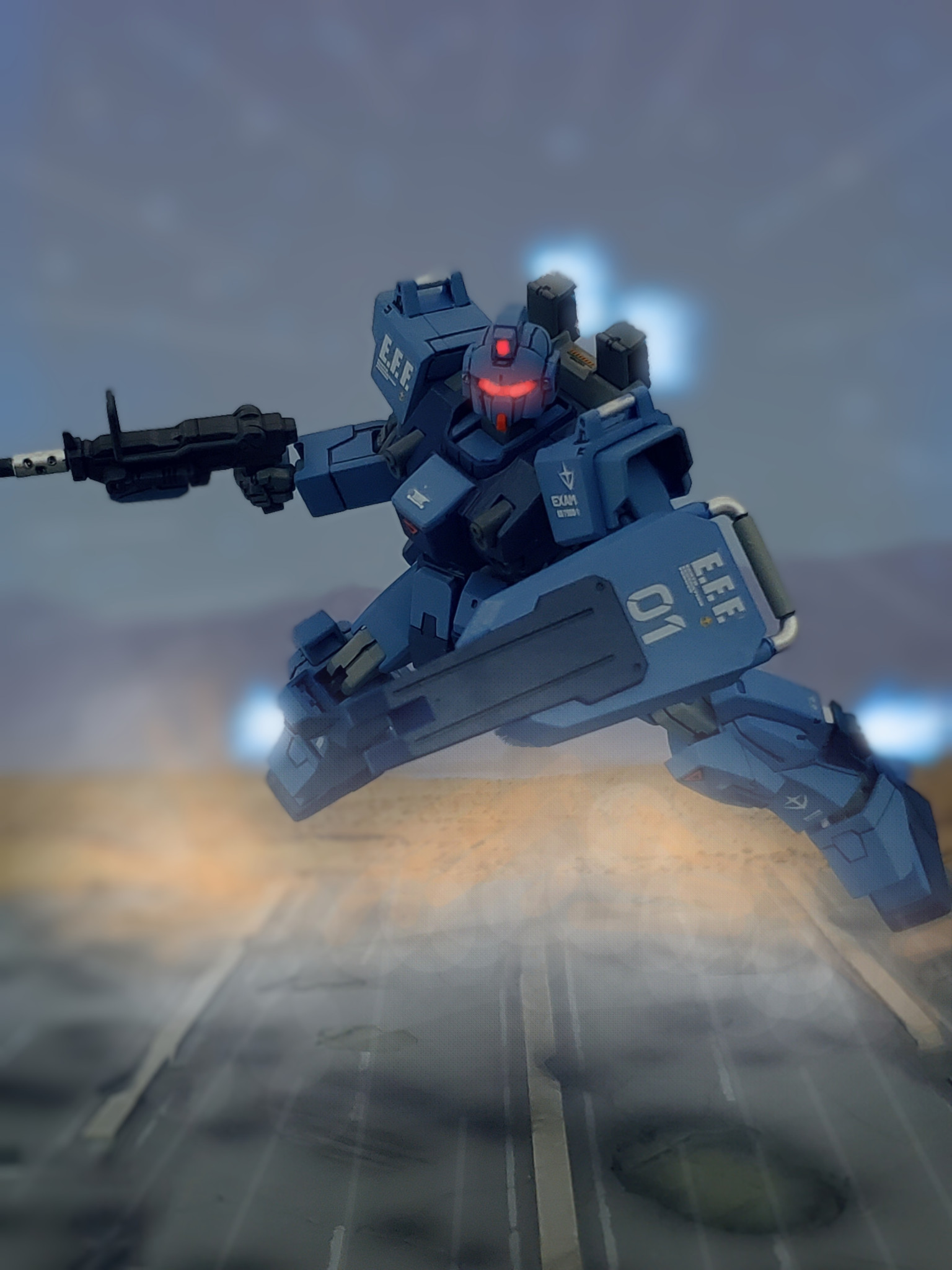 開発部は試験的に陸戦型ジムに搭載しましたが、このスペックではシステム負荷が大きく稼働障害を起こすため急遽機体性能の高い陸戦型ガンダムへEXAMの搭載されたヘッドを移植‼️これによりOSに対応しうる連邦軍EXAM搭載型MSブルーディスティニー1号機が完成しました😊✨』