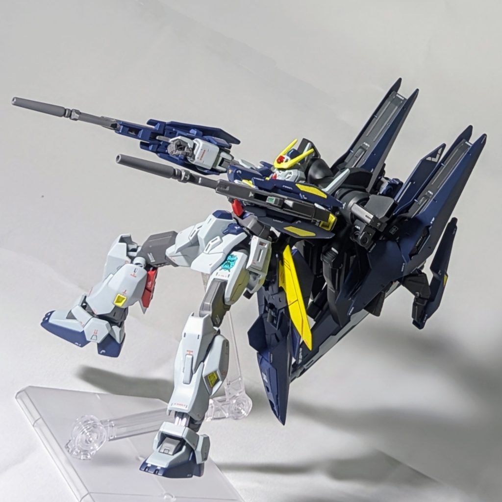 折りたたんだスーパーロングビームライフルを機体後方にマウントしています。