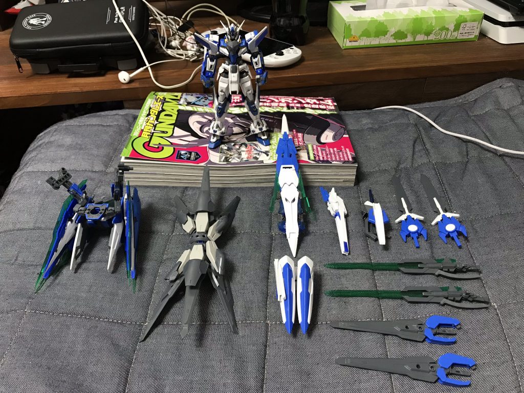 この剣はRGクワンタのGNソードの取手と正式名書忘れたんですが剣の先をくっ付けてこうなりました。設定だと剣先が戦闘で消耗した時、換えの剣先があれば交換可能という感じで造りました( 'ω' )⚔