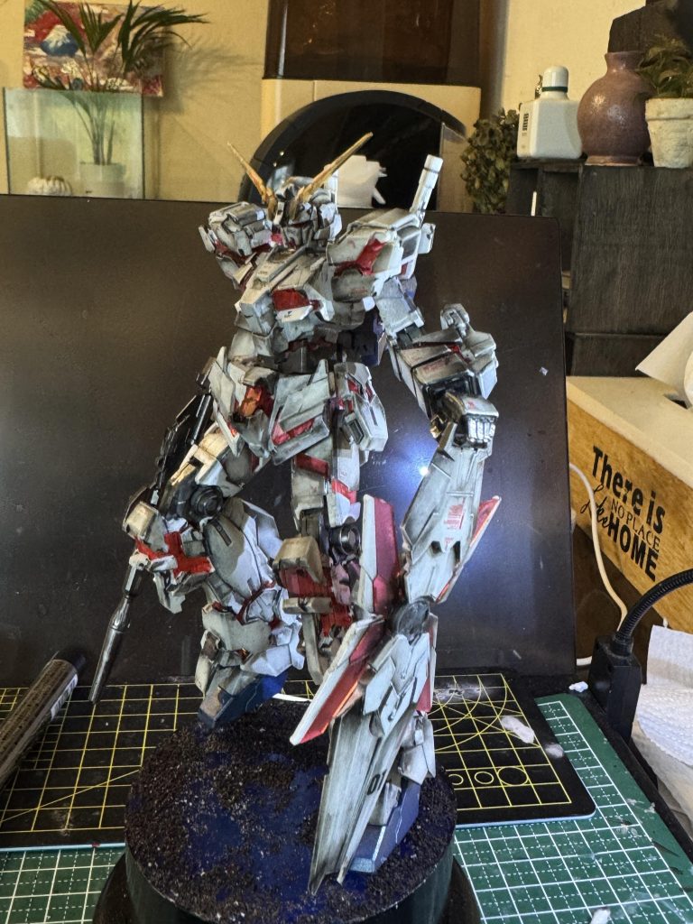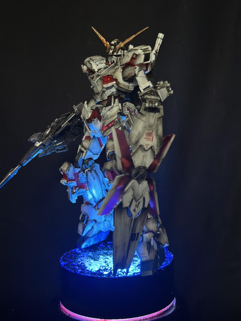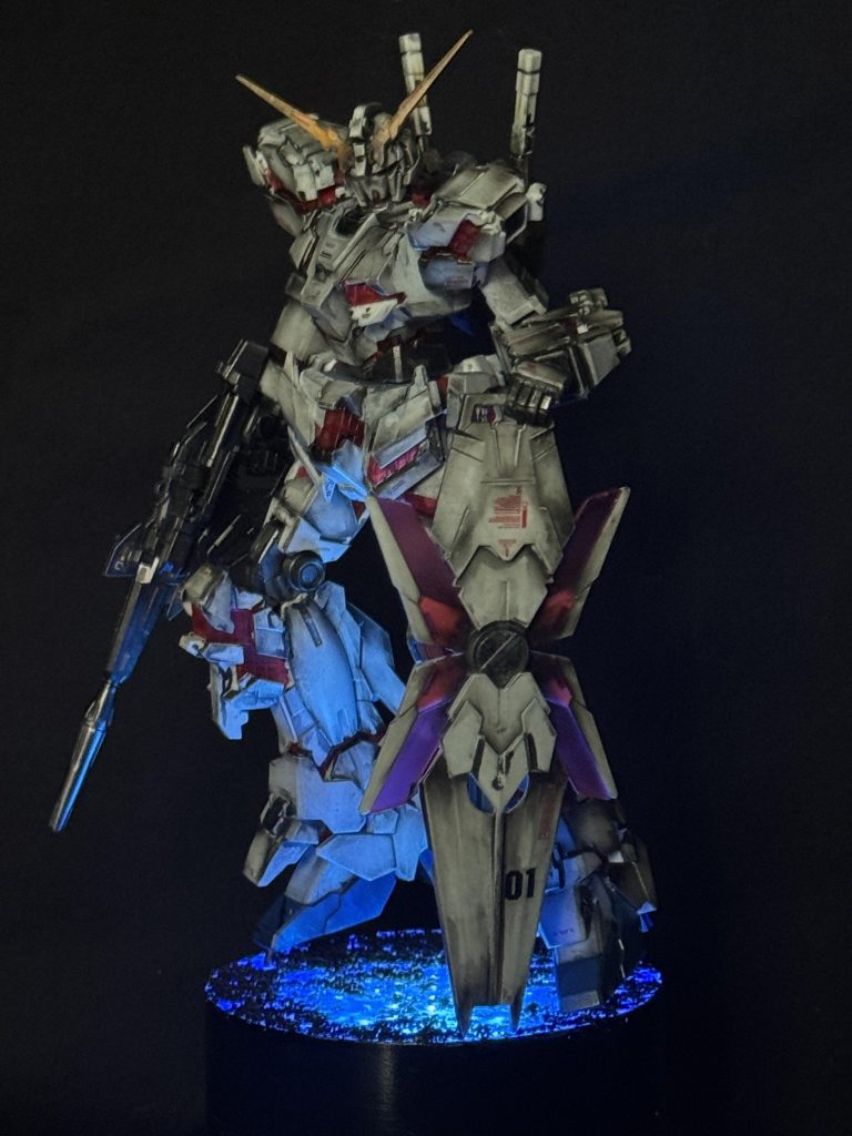 コメント失礼します!これは迫力ある仕上がりのユニコーンですね!めちゃくちゃかっこいいです!黒の背景に佇む機体へのライティングがこれまた美しい!このような発想や表現は自分にはないですので羨ましいかぎりです!よい作品を拝見させていただきました!