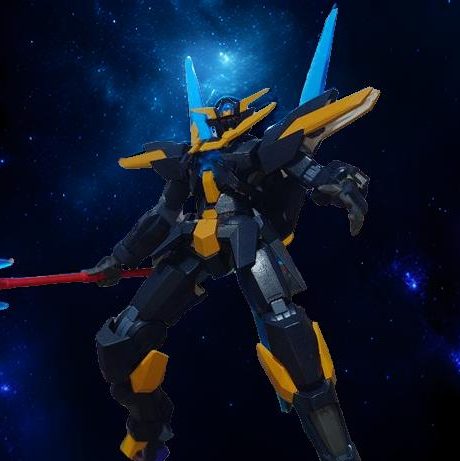 カラーリングでガラッと雰囲気が変わりましたね。黒い機体に黄色が映えて、めちゃカッコいいです。赤い目に赤い槍も決まってます!