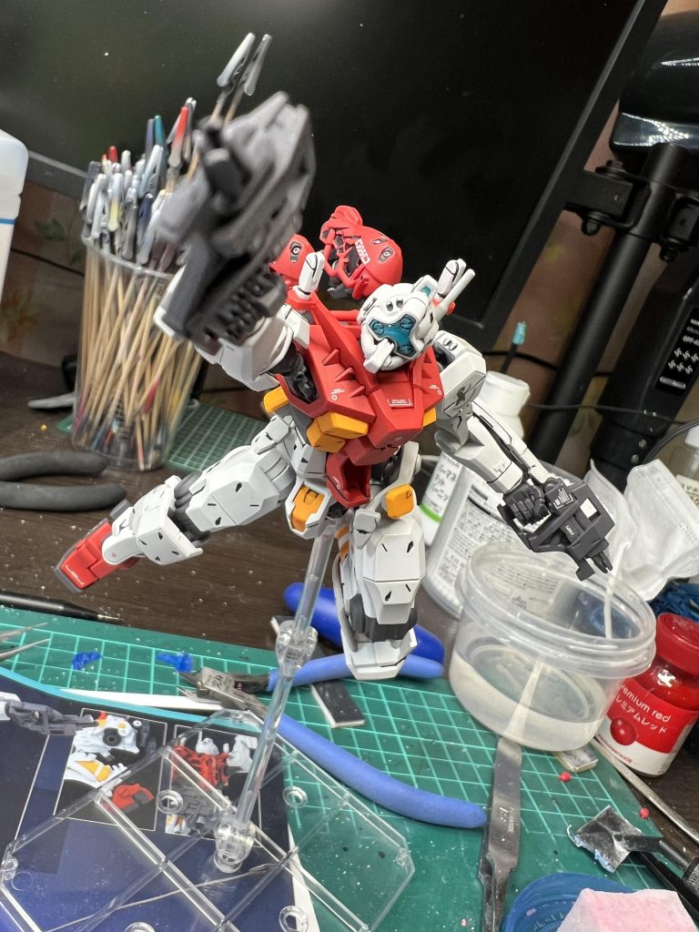 少し赤を明るくしヒロイックに仕上げました 武装がデカ過ぎてポ…