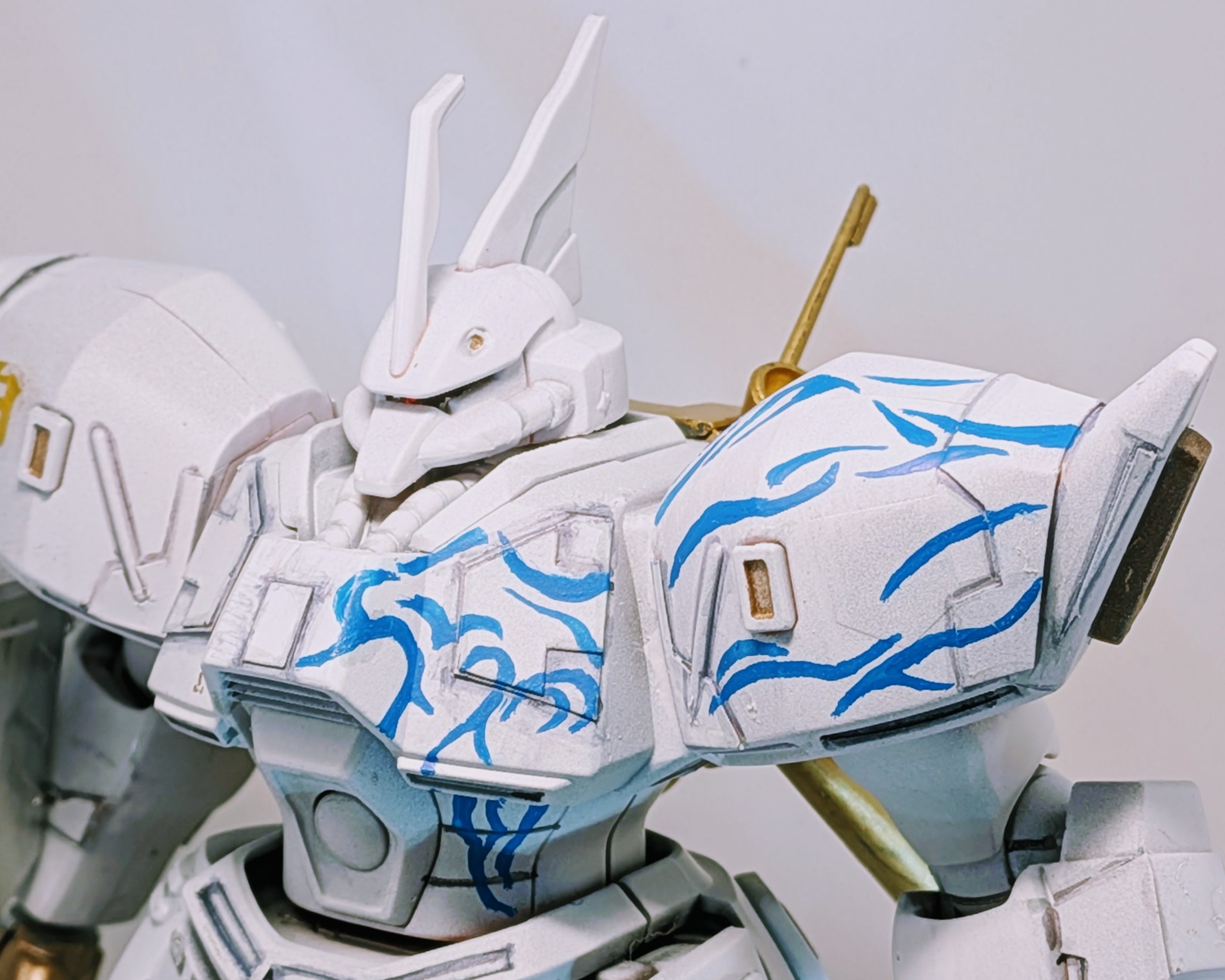 色味と肩口の波模様は、GUNDAM WEAPONSのゲルググ巻に載っていたアトリエ彩・大祐さんの作品オマージュです