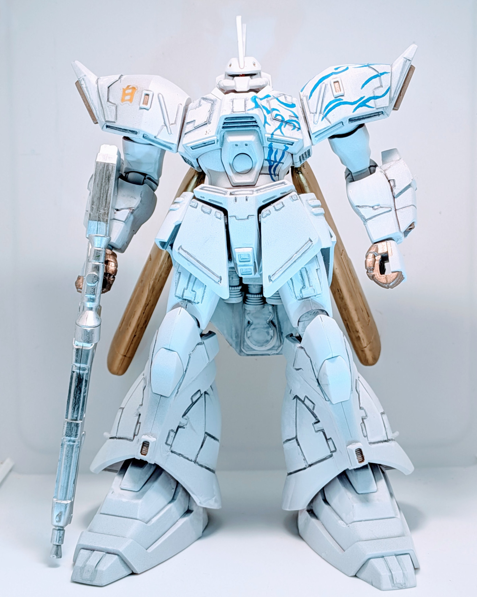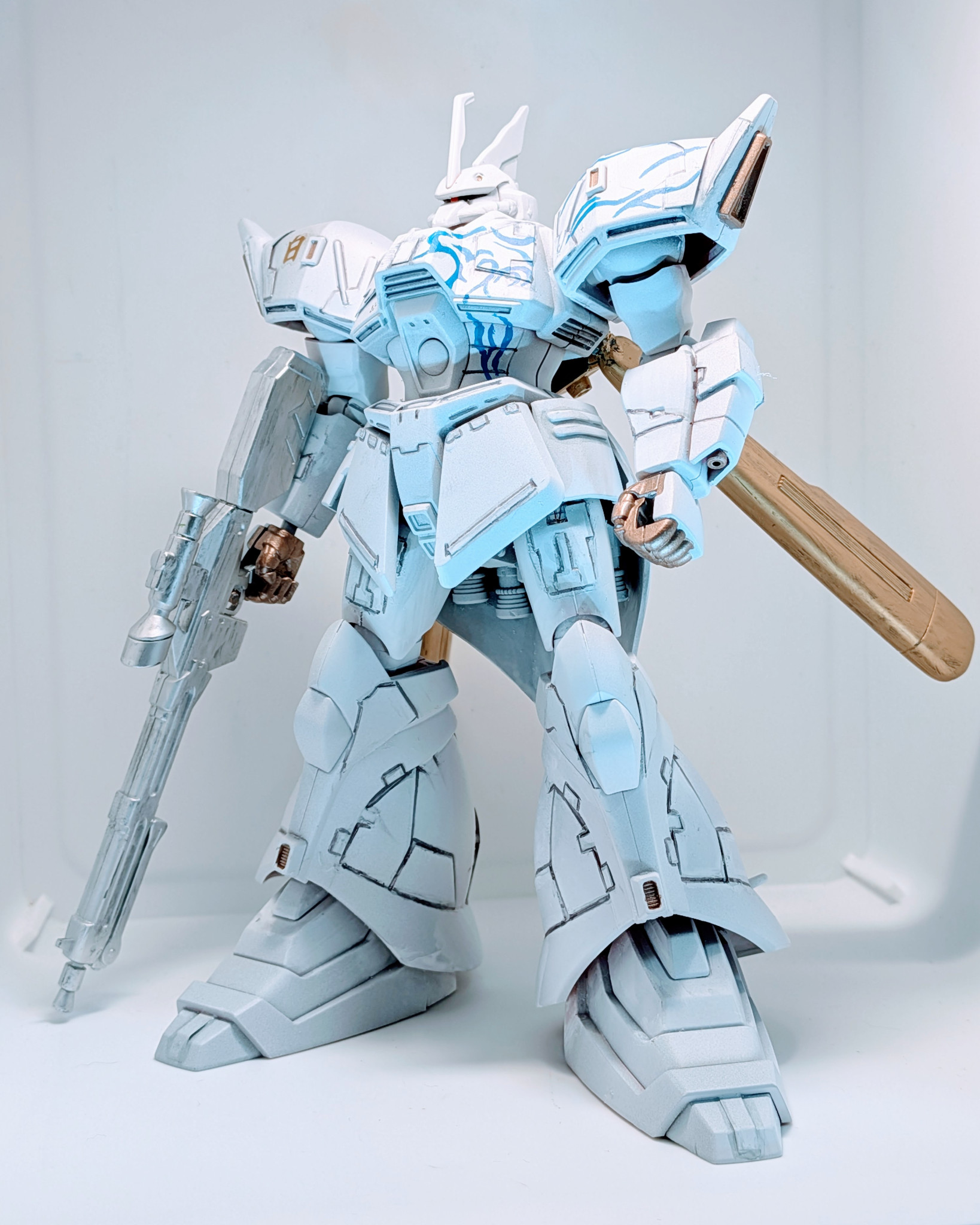 純白の機体に水色の差し色がカッコいいですね✨スマートなゲルググJがよりスマートなイメージに( ・ิω・ิ)