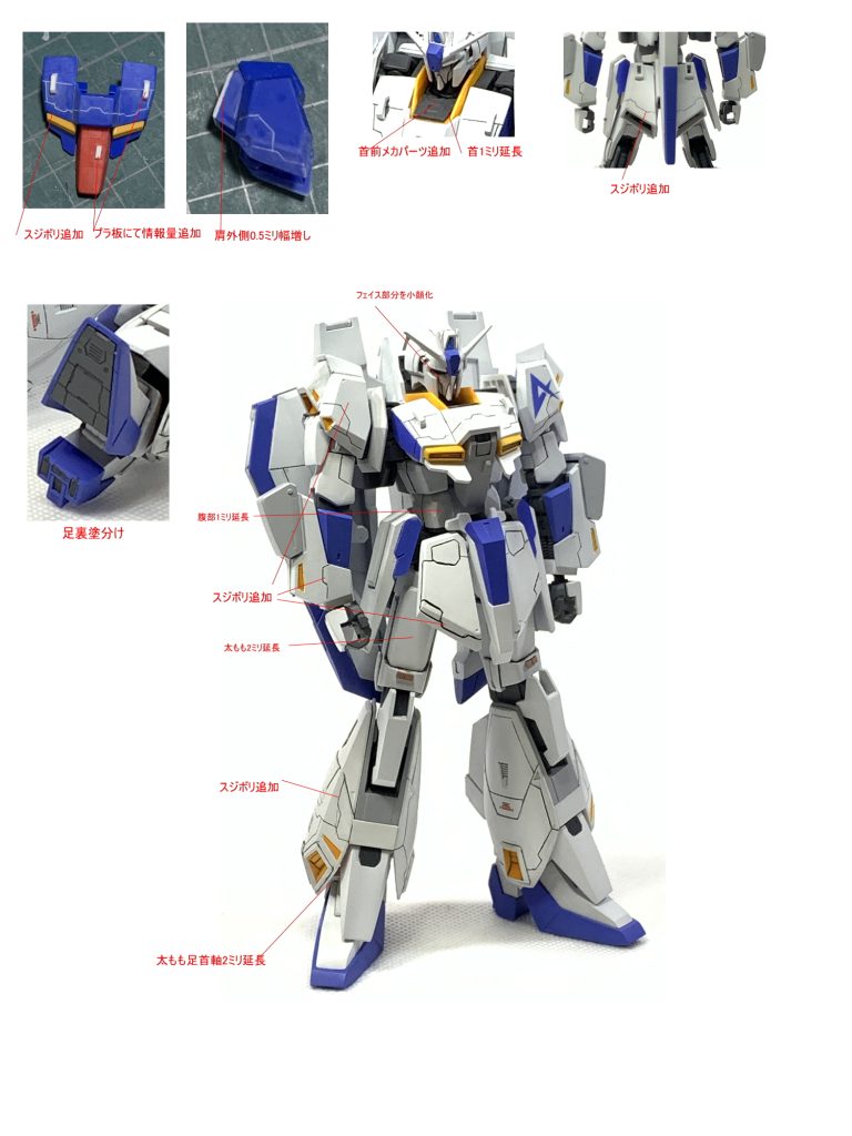 guplafact… HG 2025.05/12更新 HGUC Zガンダム EVOLUTION PROJECT 1376 176 いいねしたモデラー(176) 0 2 作品を共有 首を1ミリ延長 腹部1ミリ延長 太もも2ミリ延長 足首軸にて2ミリ延長してプロポーションを変更しました。 胸と腹部に突起物みたいな物をプラ板にて製作しました。 フェイスを小顔化して少し奥に取付位置を変更しました。 各所にスジボリにて情報量追加しました。 カラーリングはストライクゼータを参考に変更しました。 機動戦士Ζガンダム HGUC 改造 プロポーション変更 スジボリ カラーリングを変更して情報量を増やしました コメント コメントをして応援しよう コメントにはログインが必要です guplafactory 主にMGやRGやHGUCを製作しています。 自分なりに改造をしたりしています。 9 HG 高機動型ザクⅡ シーマ ガラハウ専用機 胸部、スカート周りを形状変更をしてスジボリを追加して 雰囲気… 8 HG 高機動型ザクⅡ ユーマライトニング機 色を変更してユーマライトニング機にしました。 スジボリの彫り… 9 HG 高機動型ザク ランバル機 スジボリ追加にて情報量を追加してカラーリングを 変更してラン… 9 HGUC グフ リバイブ 各所にスジボリにて情報量を追加して塗分け 太ももをパテにて幅… guplafact…さんのページ この作品をお薦め作品に設定する Please login to update your profile! Please login to update your profile! Please login to update your profile! Please login to update your profile!