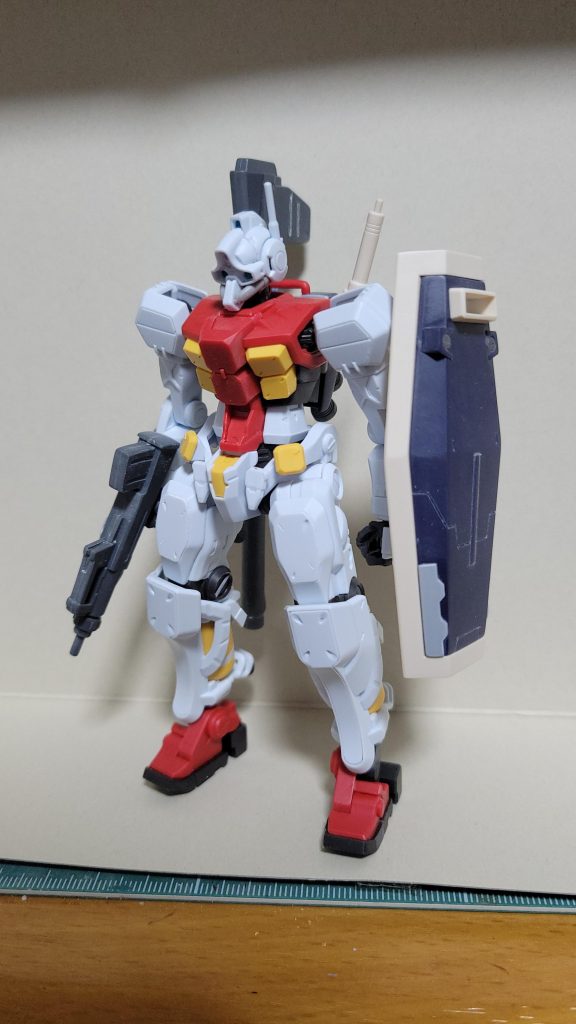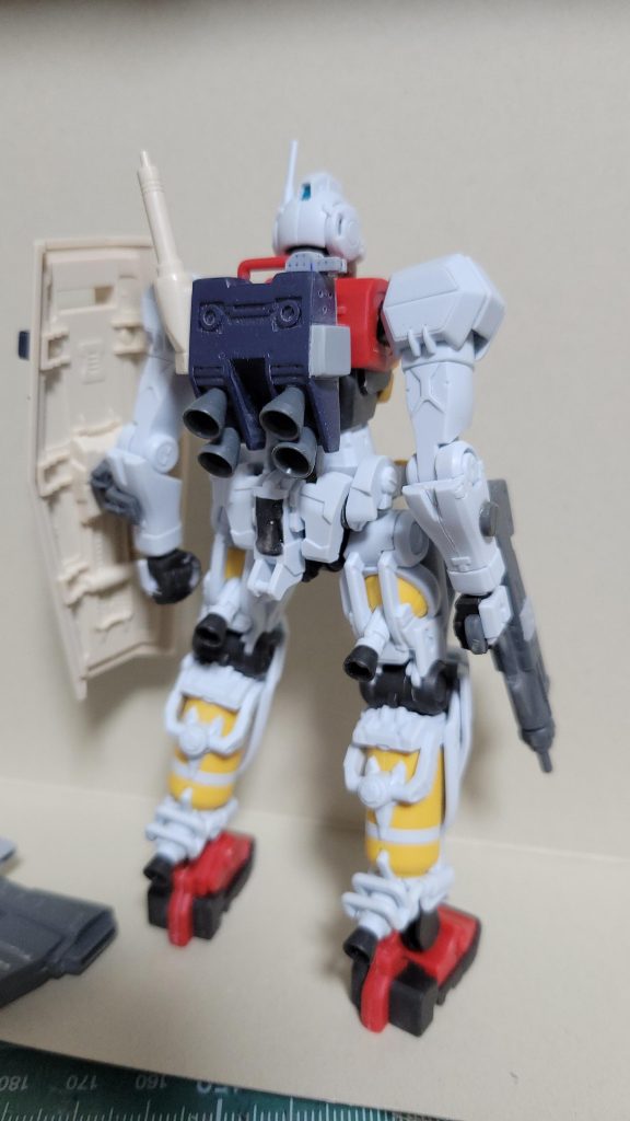 武装はジム改のシールド、マシンガン、バズーカ、ビームサーベルを装備します。