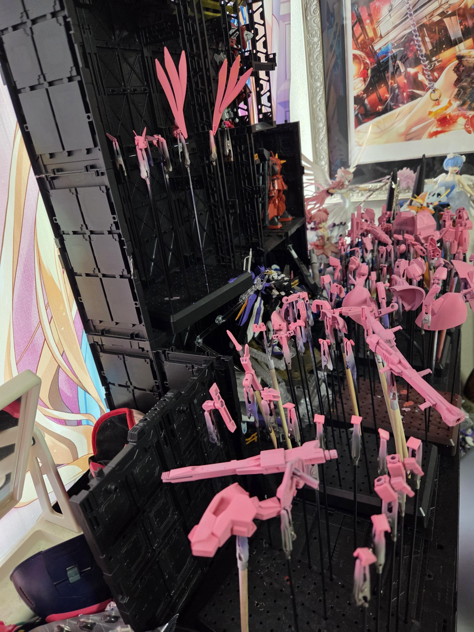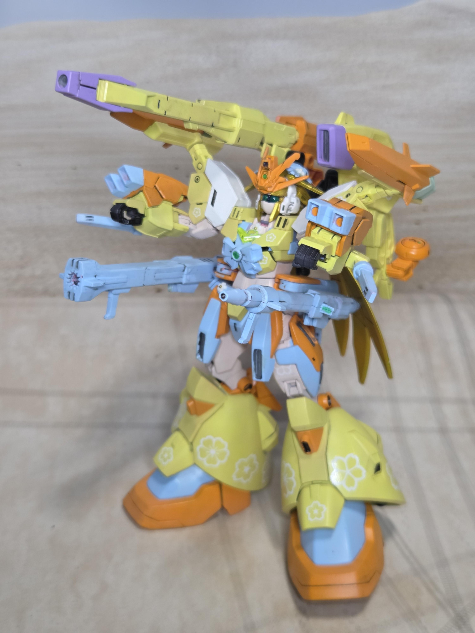 はなかなた専用機ディオバスターガンダムカナ 。はなかなたさんが足デカ重武装が好きと言うことでヴィートルーガンダムをベースにノーベルとバスター、V2バスター他の武装にドムトルーパーの足を使い2Dモデルカラーイメージで塗装しました