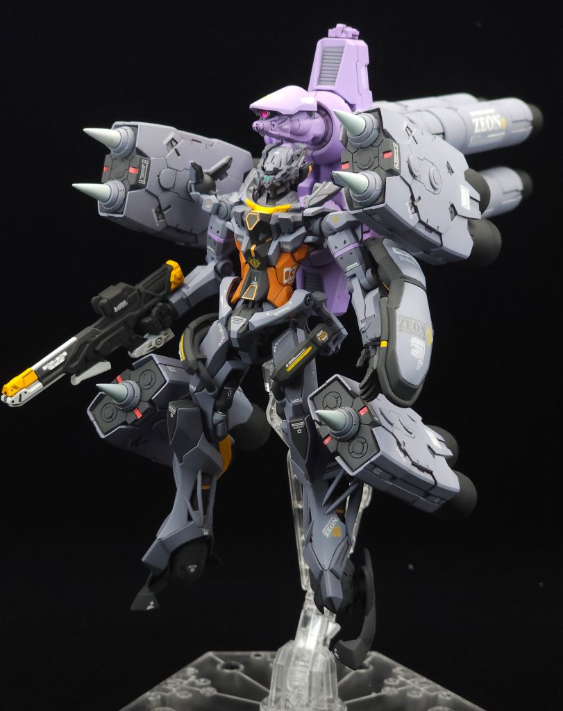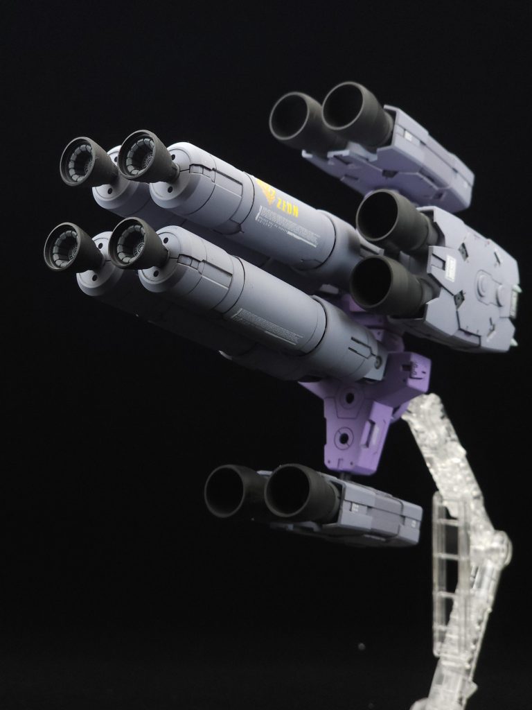 サイコミュロック解除前では追加スラスター&武装としてメガ粒子砲を両肩、両脚に装備