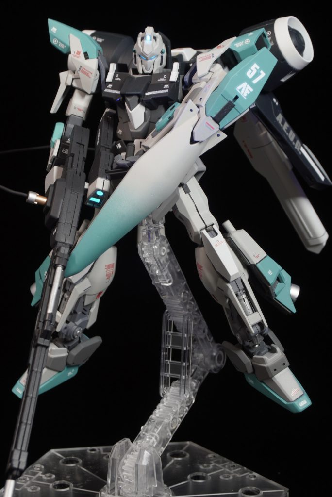 センサー周りは電飾でしょうか、カッコイイです。機体カラーが蛍光系なのもあるのでしょうがミサイルの色彩がピンクってところ、試用品っぽくてGoodです。ボンベが若干浮いてる気がしますがそのままなら仕方ないですね。素晴らしい完成度です(*´ ω`*)