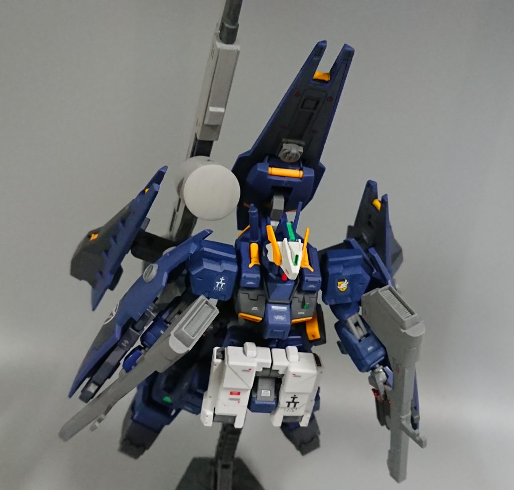 Zガンダムの設定ではありえないかもですが、リックディアスな方向性をもたせたかったので、背中のシールドにクレイバズーカを装備して少々腰あたり低重心になるようにバランスをとりました。