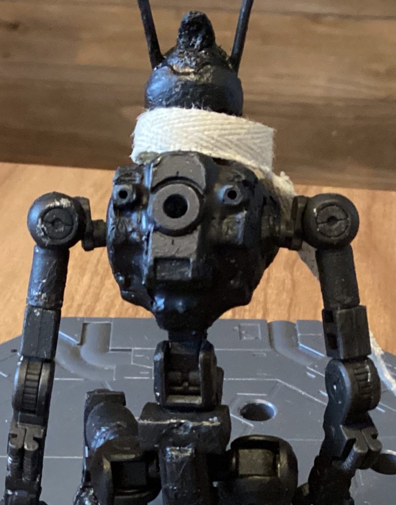 頭部はエアリアルのトサカ?みたいなところの後ろをとんがらせて右目はエクシアリペアみたいにしました。