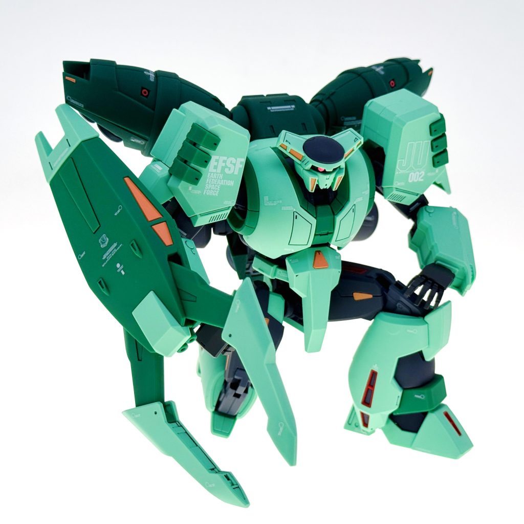 重厚な外観の印象と違う、キット自体は高い可動性を有しており、宇宙空間でのダイナミックな躍動感あるポージングが再現できる。